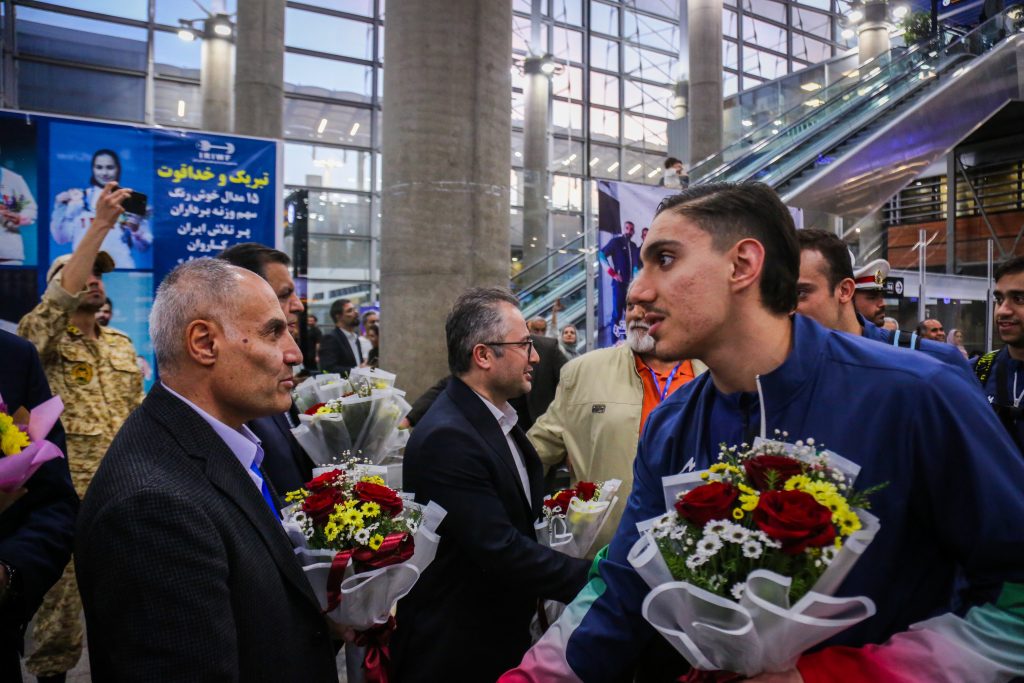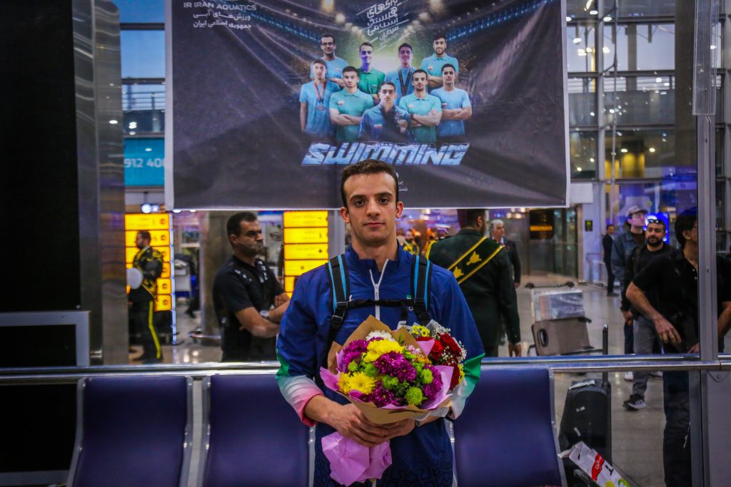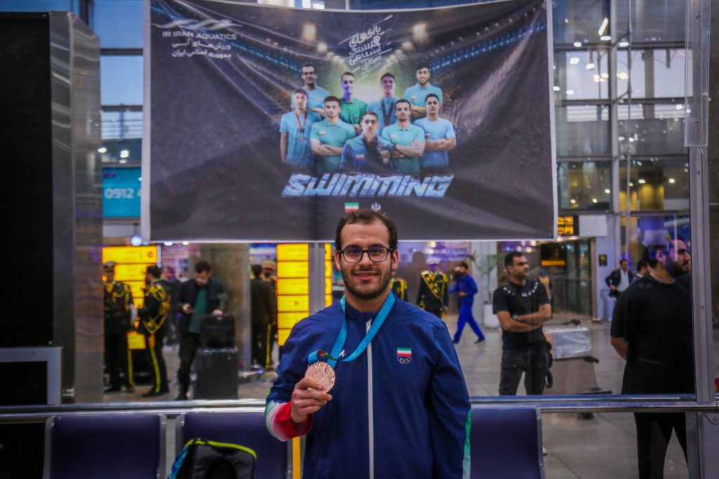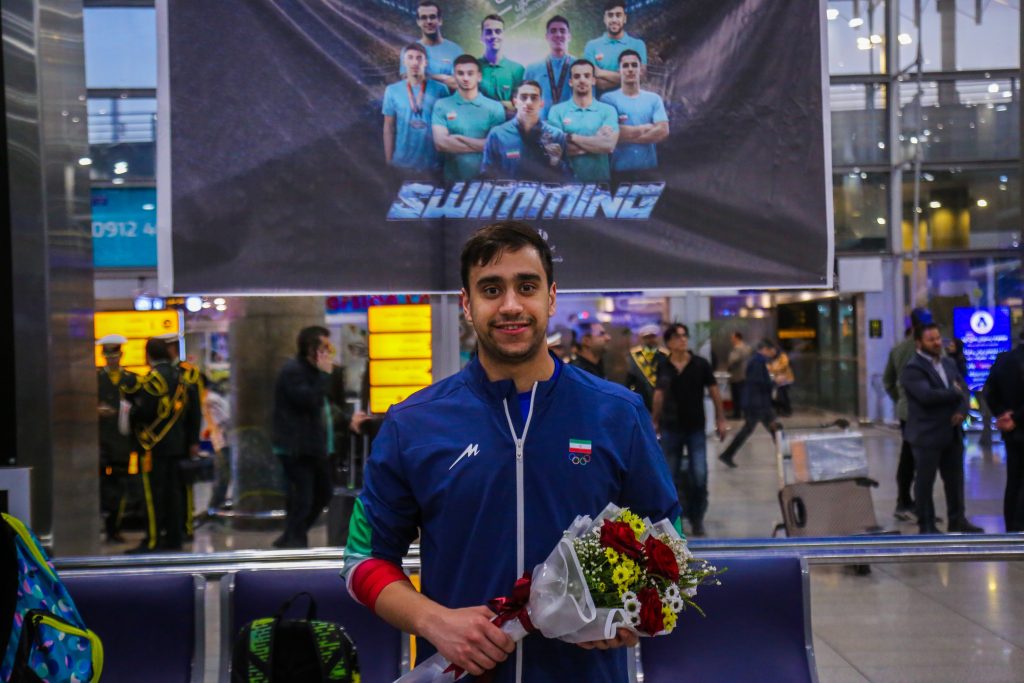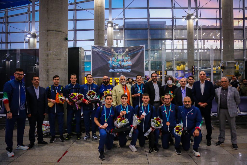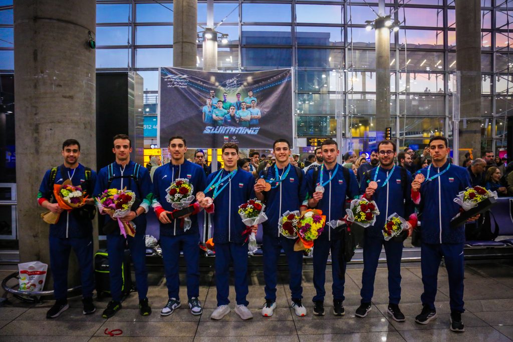 مسئولان فدراسیون ورزشهای آبی و پیشکسوتان شنا همراه با خانواده قهرمانان در مراسم استقبال در فرودگاه امام خمینی (ره) حضور داشتند.