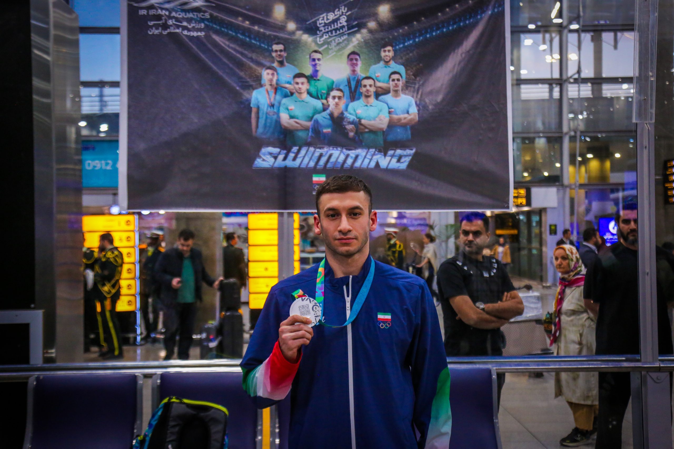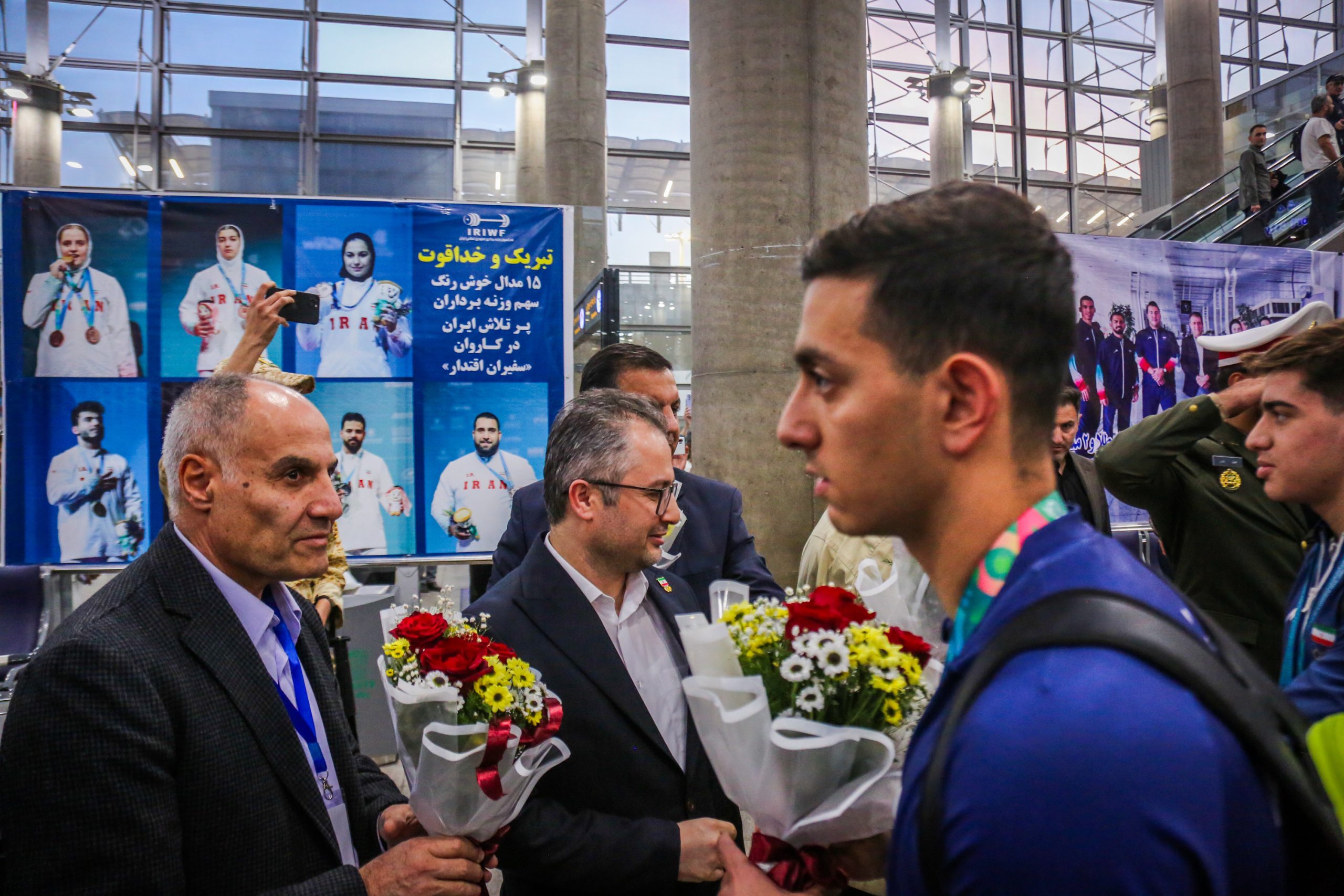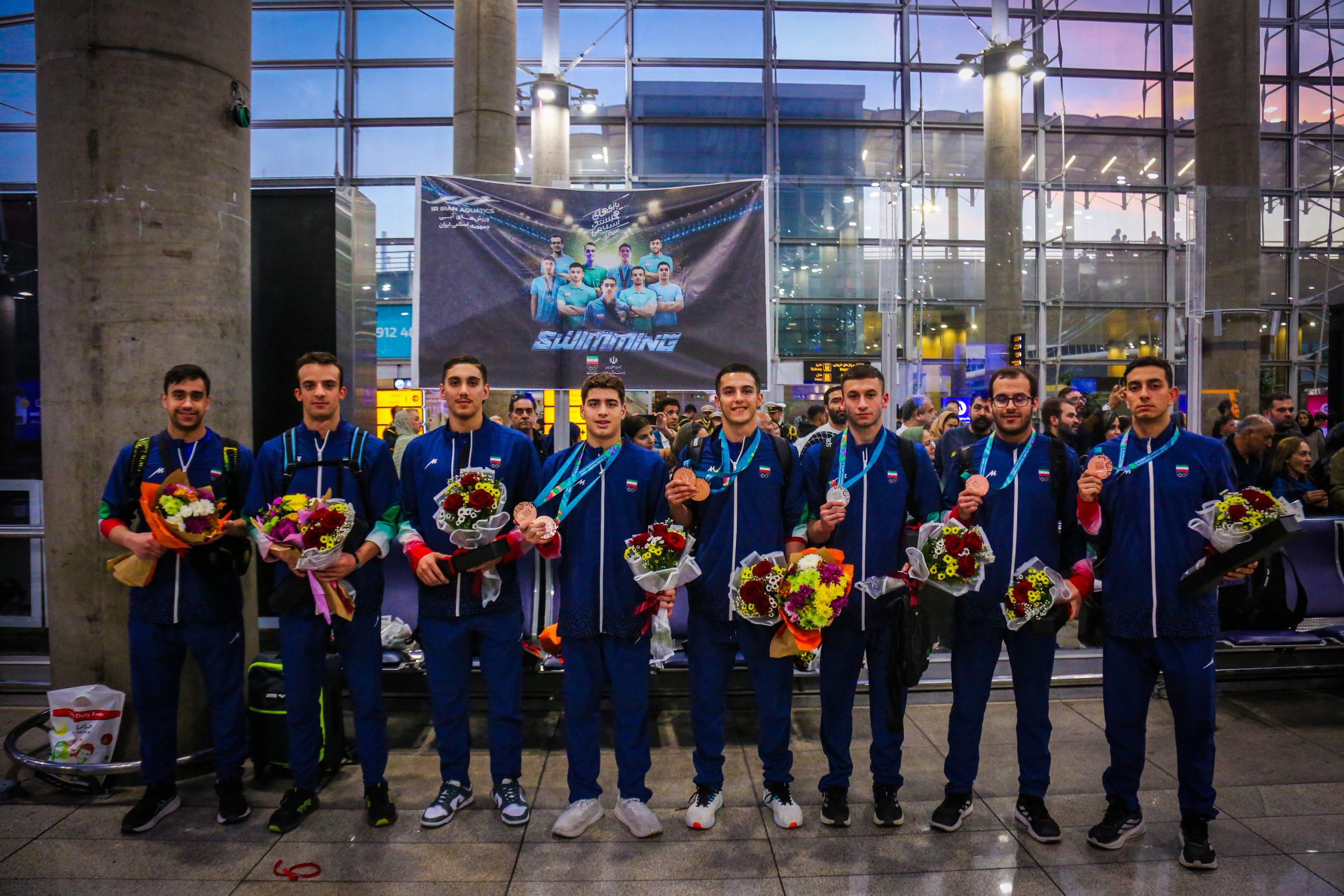 مسئولان فدراسیون ورزشهای آبی و پیشکسوتان شنا همراه با خانواده قهرمانان در مراسم استقبال در فرودگاه امام خمینی (ره) حضور داشتند.