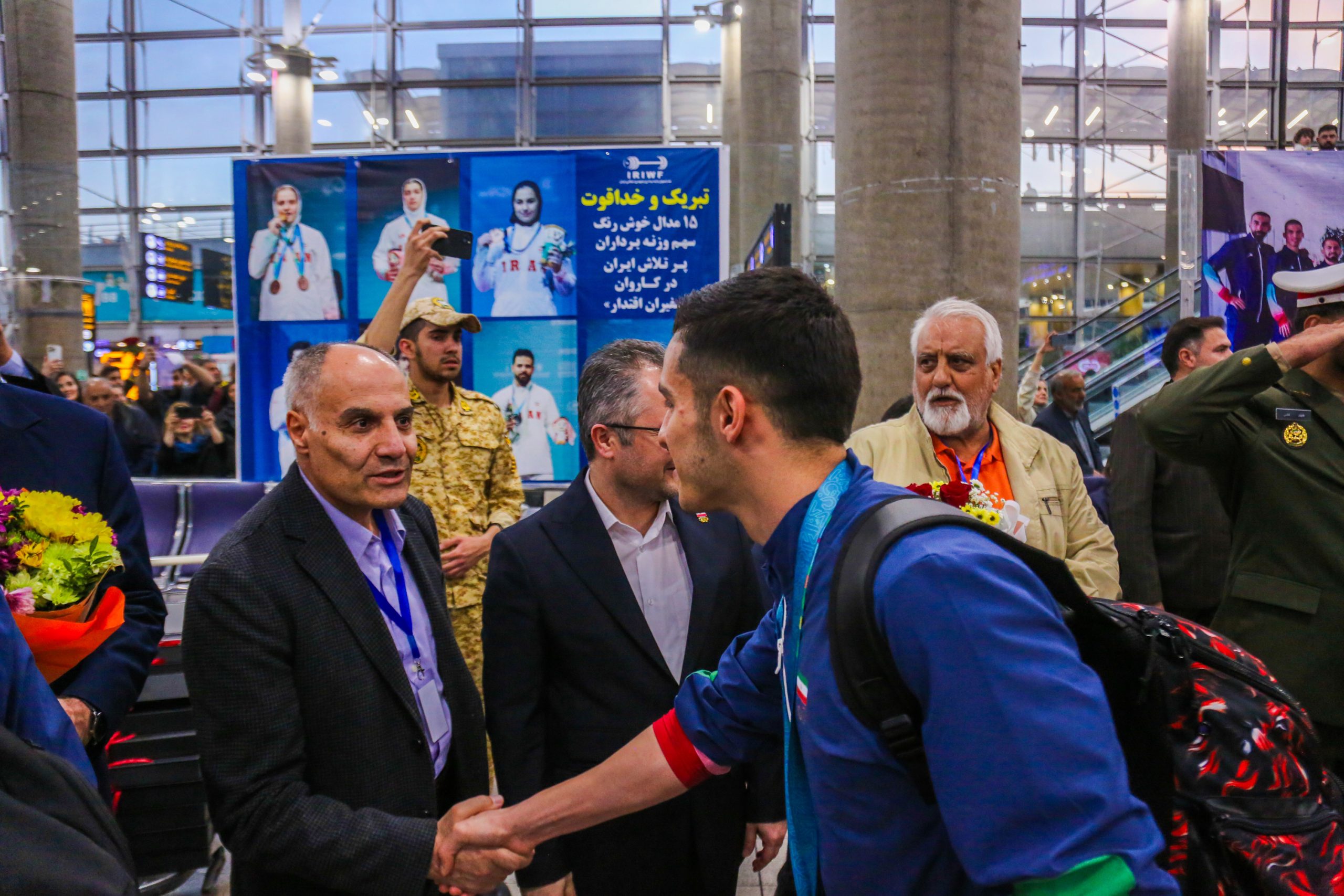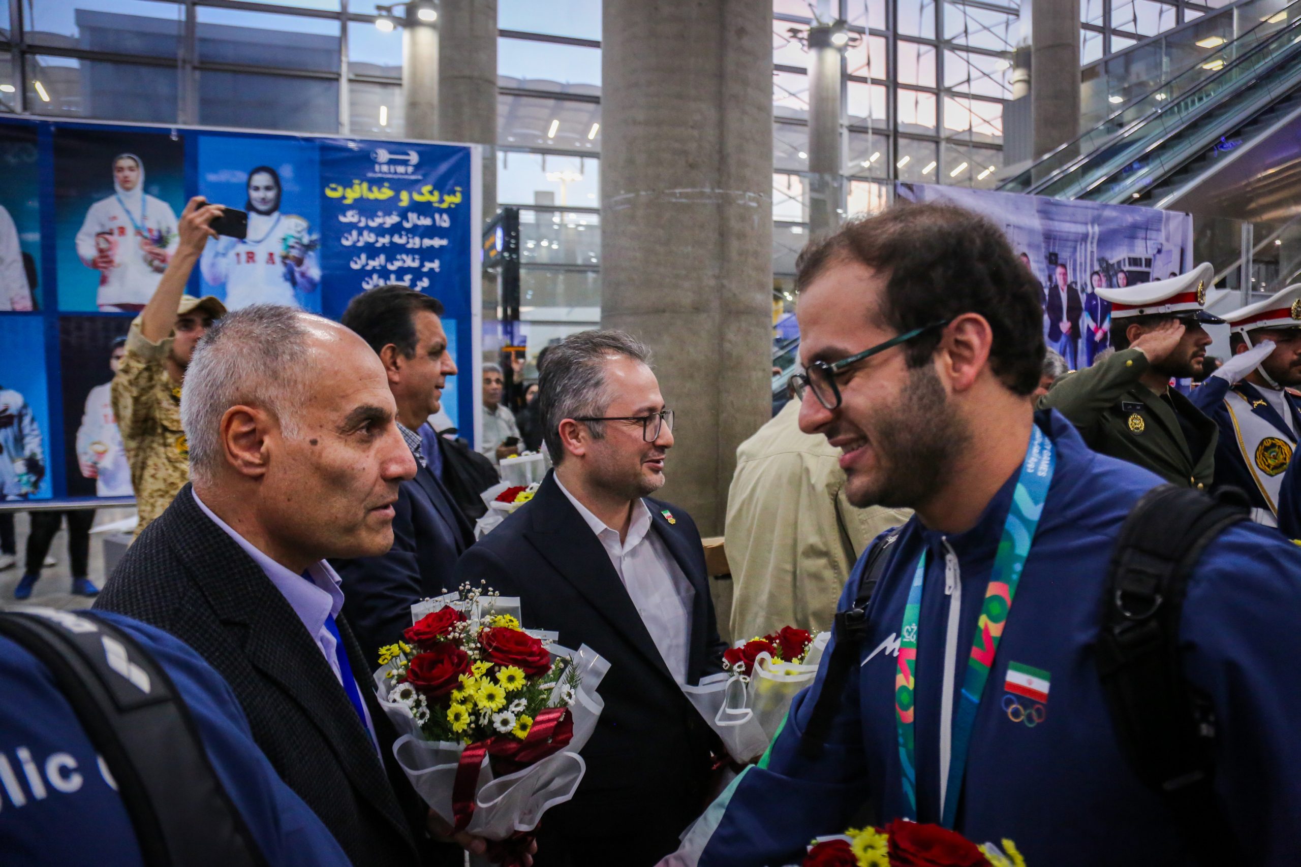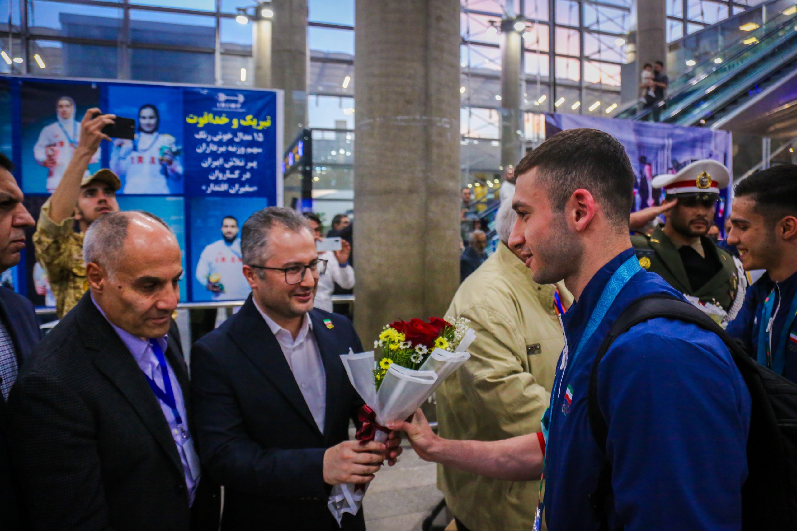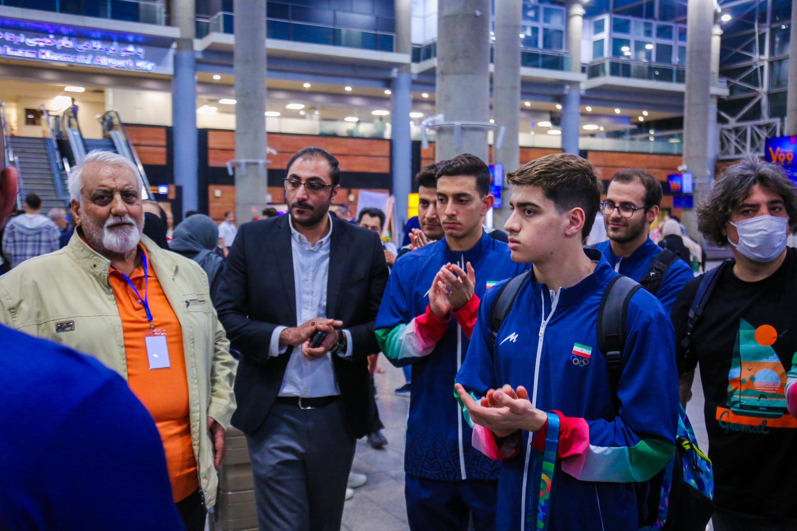 مسئولان فدراسیون ورزشهای آبی و پیشکسوتان شنا همراه با خانواده قهرمانان در مراسم استقبال در فرودگاه امام خمینی (ره) حضور داشتند.