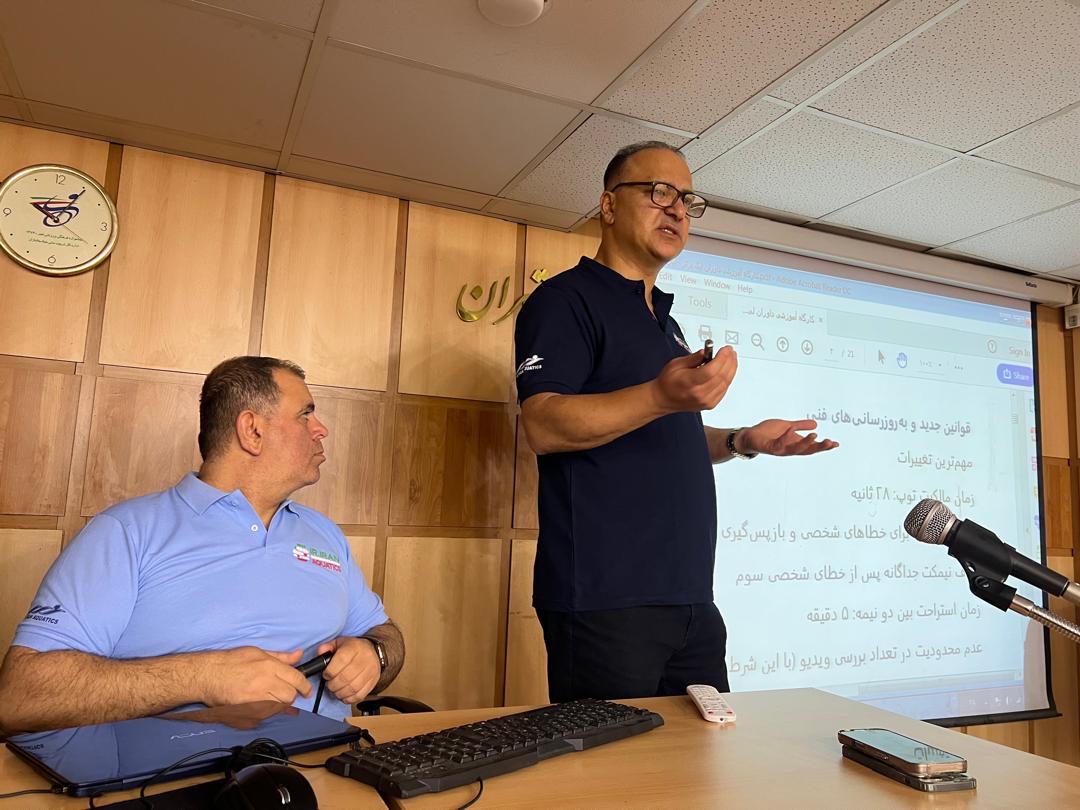 به گزارش روابط عمومی فدراسیون ورزش‌های آبی، کلینیک داوری پیش‌فصل واترپلو در سالن اجتماعات هیات ورزش‌های آبی استان تهران برگزار شد و طی آن داوران و مدرسین فنی، آخرین تغییرات قوانین و نکات تخصصی قضاوت در فصل جدید مسابقات را مرور کردند. این دوره آموزشی با حضور محسن رضوانی، رئیس فدراسیون ورزش‌های آبی، و جمعی از ناظران و داوران کشور برگزار شد.
