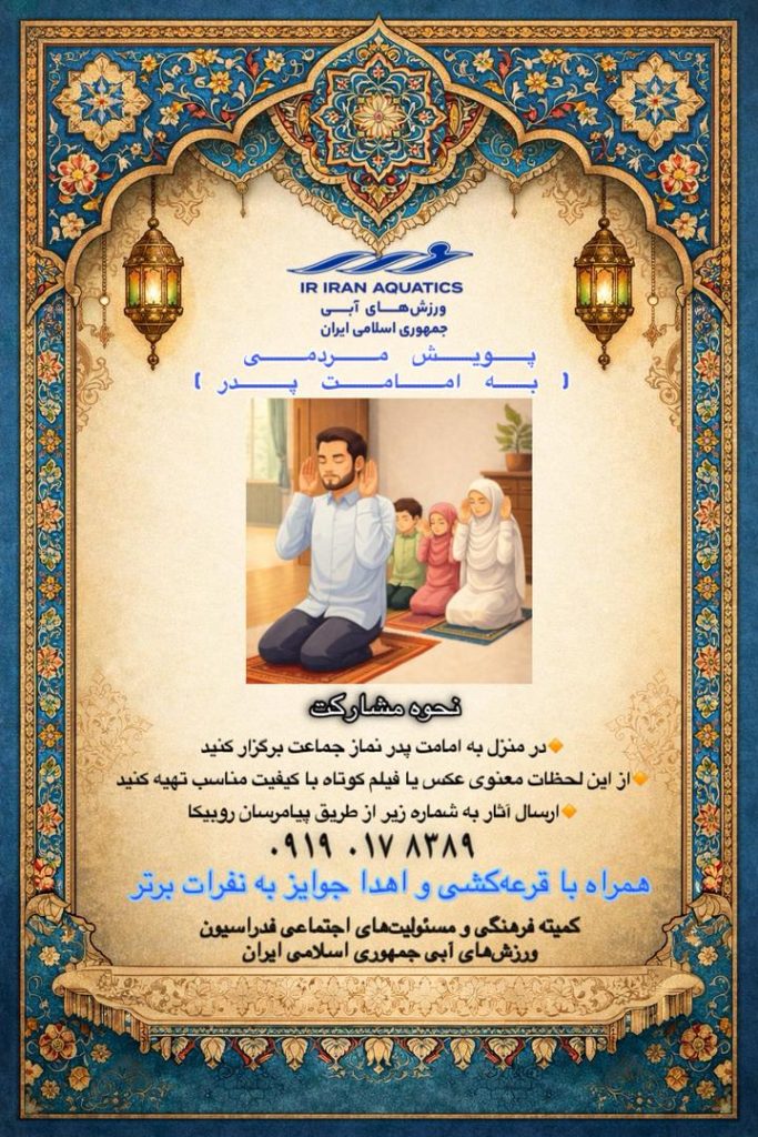 به گزارش روابط عمومی فدراسیون ورزشهای آبی، این فدراسیون در ادامه برنامههای فرهنگی خود و در چارچوب مسئولیتهای اجتماعی، پویش «امامت پدر» را با تمرکز بر برگزاری نماز جماعت خانوادگی به امامت پدر در محیط خانه اجرا میکند.